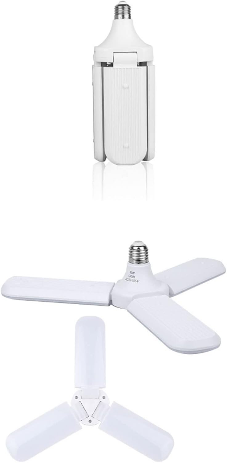 ✔Material: PC ,Metal✔LED: 2835 SMD✔LED Quantity: 228pcs✔Socket Base: E27✔Input Voltage: AC95-265V✔Power: 45W✔Light Color: Warm White✔Color Temperature: 2700K-3000K✔Luminous Flux: 4000lm✔Light Beam Angle: 270 degree✔Size: Approx. folded-75*240mm / 2.95*9.45inch,unfolded-350*90mm / 13.8*3.5in✔Package List:1*45W 3 Blade Lamp★1. Long Lifespan: Last incredible 15000 hours, reduce bulbs-replacing frequency.★2. Efficient Illumination (4000 lm):Each bulb provides approximately 4000lumens of light, improving ambiance, energy-efficiency and comfort in your home.★3. Used for use in living rooms, dining rooms, kitchens, offices, family rooms, bedrooms, office, study, workplace etc.★4. Eco-Friendly. No lead or mercury. No UV or IR. Shockproof. Simple structure, easy installation.★5. PC material, the non-flammable plastic light cover is durable, fast heat dissipation. Simple Installation: Standard American E27 Base.
