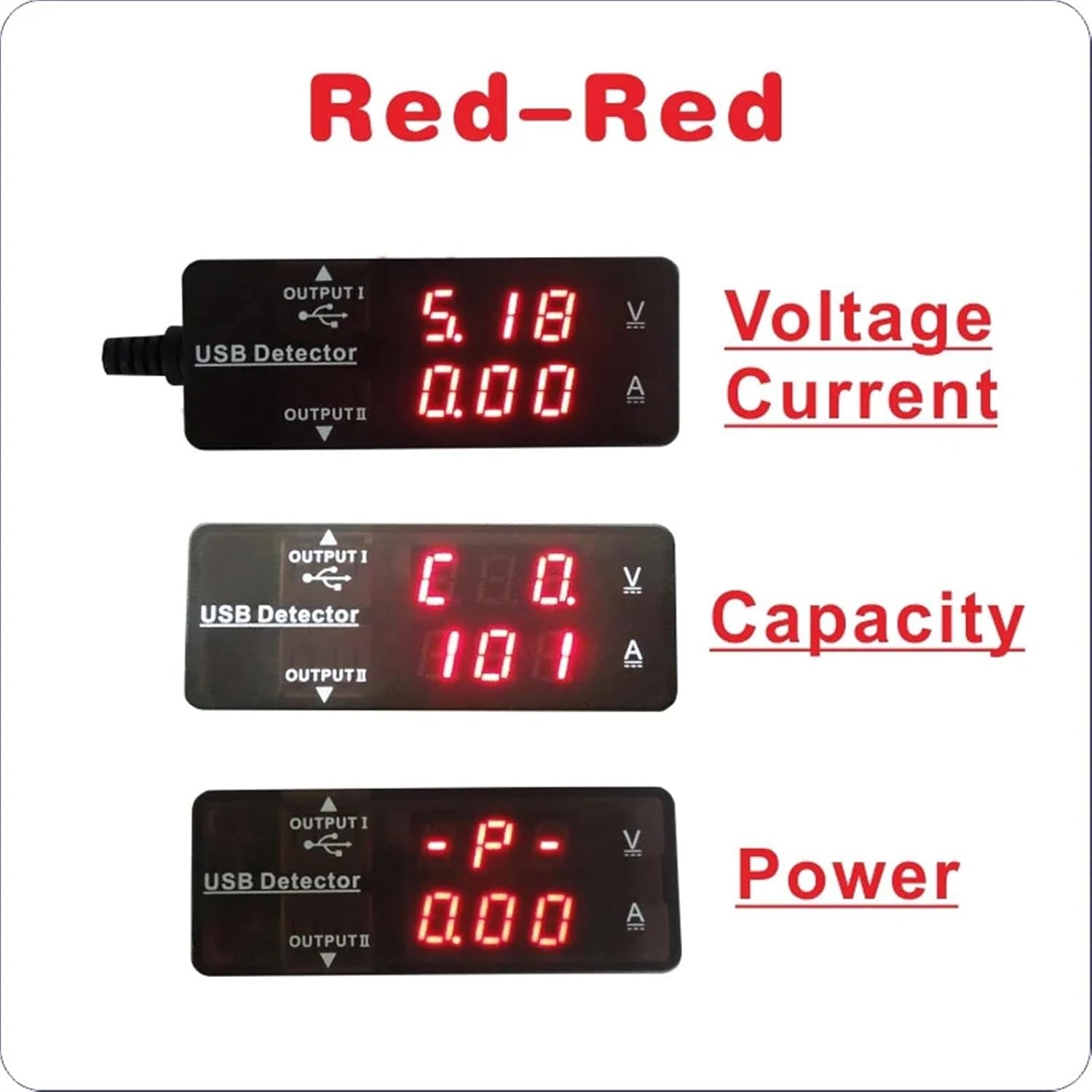 AmmetersAttention: The instrument can be tested in real-time voltage, current, power, charging or discharging the cumulative capacity.Do not have the boost voltage, current, or discharge device function. Charge or discharge current is determined by the size of the USB device to be charged with the charging head, With longer charging time, the charging current slowly getting smaller, this is a normal phenomenon When testing the capacity of the power meter to calculate the sum of only two USB ports output, excluding the front-end equipment, and back-end equipment conversion efficiency;For ultra-high capacity precision please pass. When OUTPUT1 connects to QC2.0/3.0, OUTPUT2 cannot connect to any device.