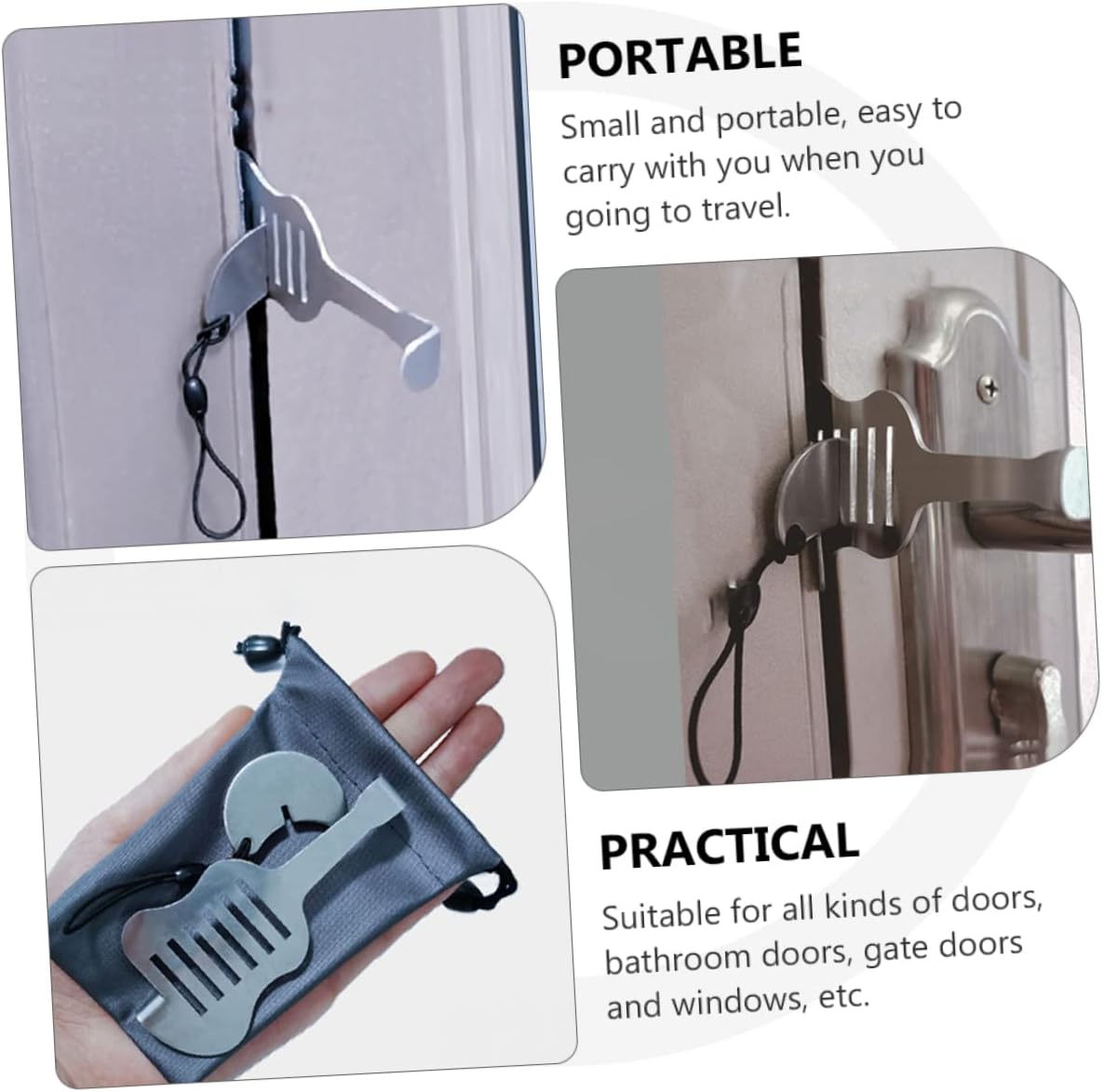 Package Include 1 x Door BoltFeatures -Size:11.00X9.00X4.30cm/4.32X3.54X1 Latch Lock for Door.-Color:Silver Door Anti- Buckle-Material:Stainless steel hotel lock-Very practical to use, it will bring you a lot of convenience hotel door.-Made of which is durable and sturdy for long lasting use Door Security Latch.-Simple modern design, exquisite appearance, easy to install and use pocket door safety chain.-Light weight and portable, easy to carry and storage Latch Lock.-Applicable for doors and windows, which is versatile portable lock for door.Goods Descriptionportable door locks Stay and private: the door latch latches are upgraded from older door bolts, which are easier to use than regular bolts to keep you and private.Stainless Steel Door Lock Provide extra security for your bathroom, bedroom, cabinets and other interior doors