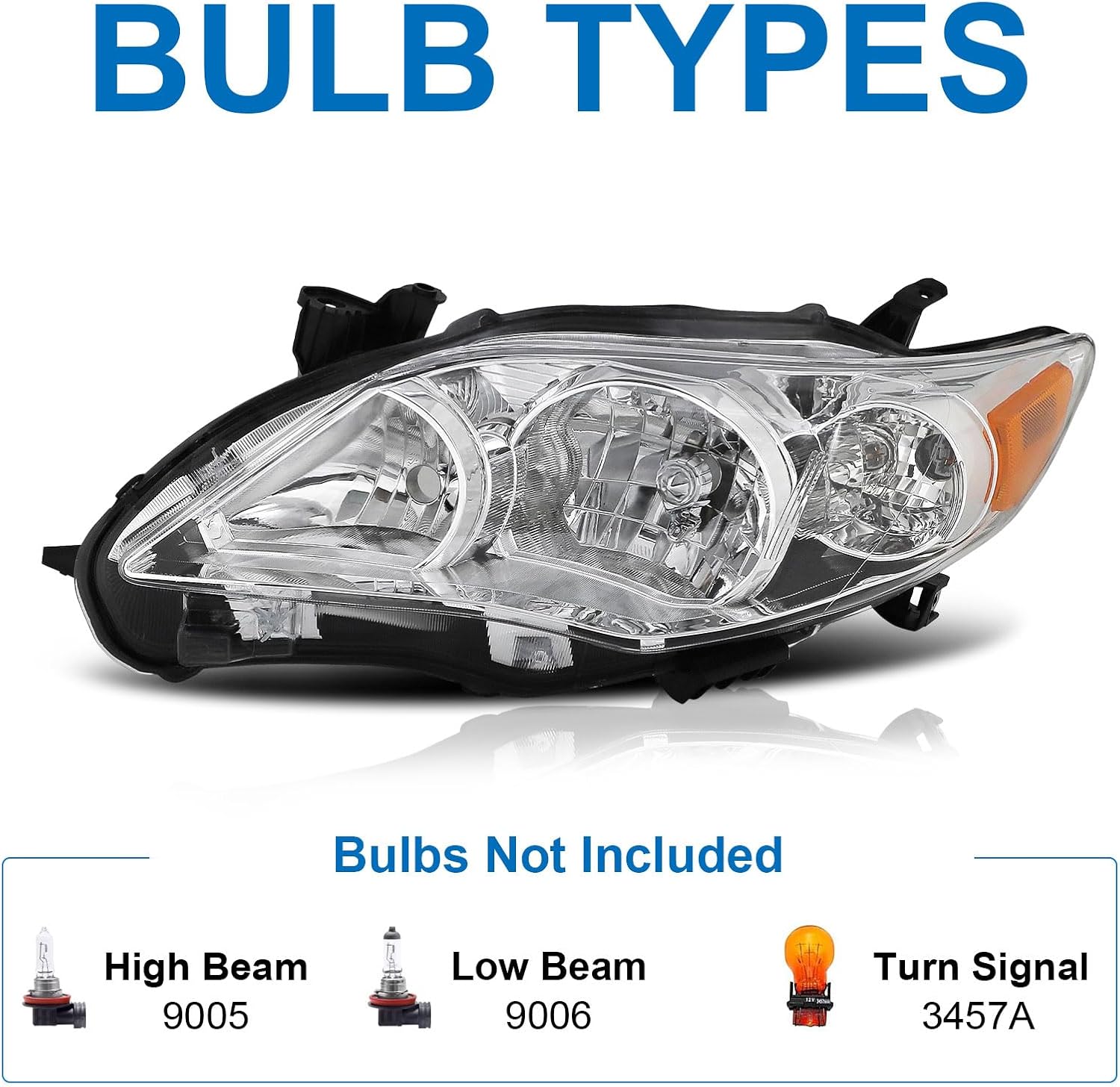 Headlight Assembly compatible with 2011-2013 Toyota Corolla 2011 2012 2013 Toyota Corolla Left and Right(Chrome Housing Amber Reflector)