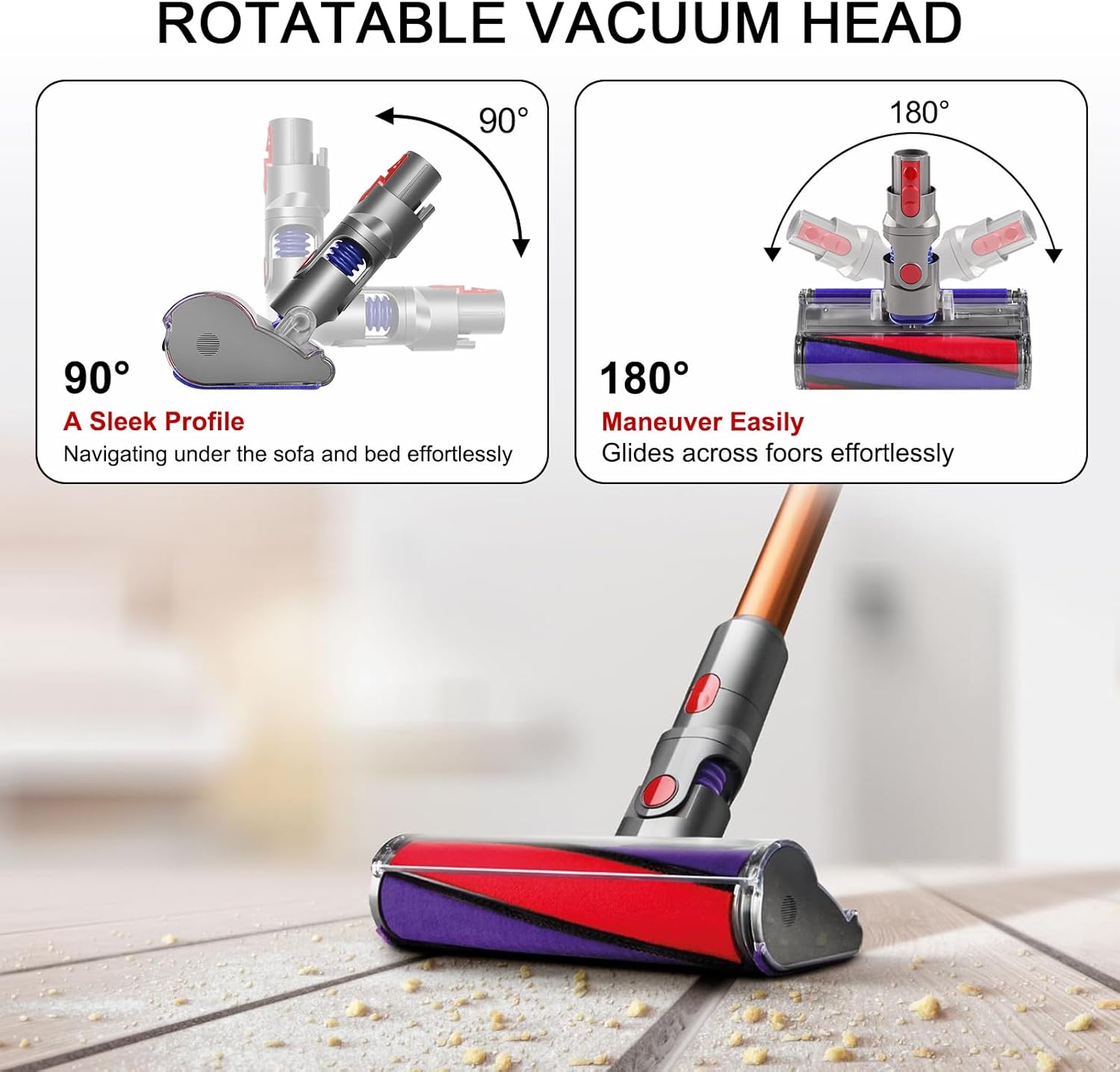 • 【PREMIUM SOFT ROLLER HEAD】The soft roller cleaning head for Dyson is encased in soft woven nylon. The fibers capture large debris, enabling it to pass beneath the cleaner head and into the vacuum while ensuring a tight seal with the floor