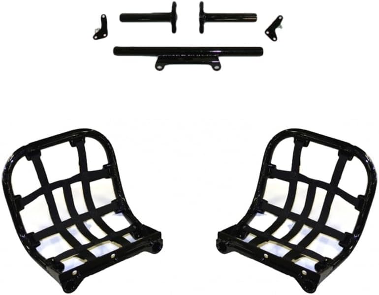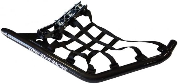 The LoneStar Racing DC-Pro Black Nerf Bars and Heel Guards combo compatible with the YAMAHA YFZ450R were designed based on the collective input from riders and racers all around the world. The DC-Pro Nerf Bars features include a wider foot peg stance with inner crisscross teeth to reduce boot wear. A full 50 inches mounted width on the MX version. Both the foot pegs and heel guards were designed to help drain out mud and water to avoid clumping. The side profile features an aggressive rake to help prevent tangling with other quads in racing applications. All wear items are completely replaceable and the overall pro peg is universal to fit most sport quads just using different hardware packages. So if you change quads you do not need to buy a complete new set of nerf bars. The nerf bars are constructed of high quality 6061 aluminum tubing and the heel guards are built from 4130 chomoly tubing that is fully tig welded for superior strength and durability.Note: Some LoneStar Racing products are built on order. Standard build time is between 2 to 4 weeks. Contact us if you would like to confirm availability of this product prior to ordering it.