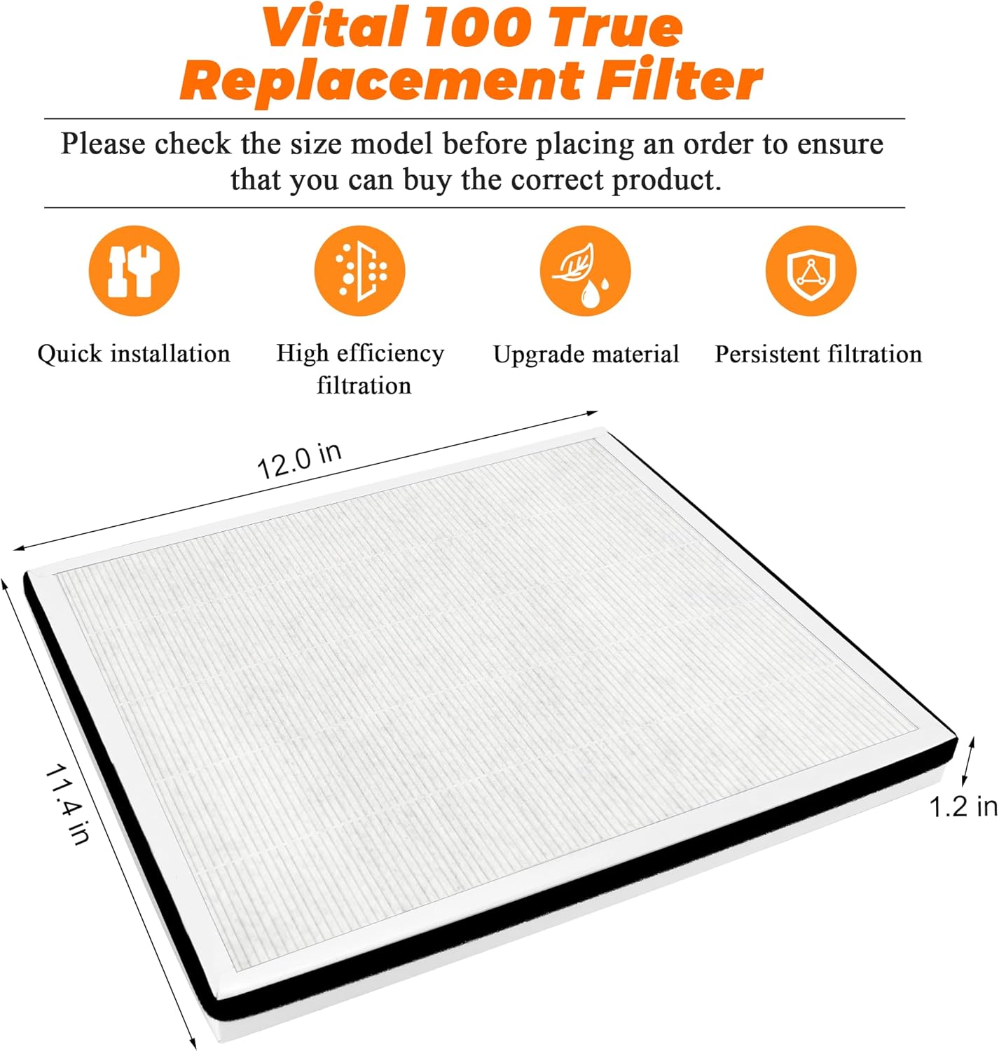 | Included Components | Air purifier filter levoit vital 100-rf high-efficiency activated carbon filter enhances overall cleanliness, ensuring a healthier environment for you and your family, Includes 2 x Vital 100 replacement Filter Dimensions: H: 12.” x L: 11.4” x W: 1.2”., Levoit purifier replacement Vital 100-RF Layers of filtration ensure the best possible filtration, removing all bad odours and dust |