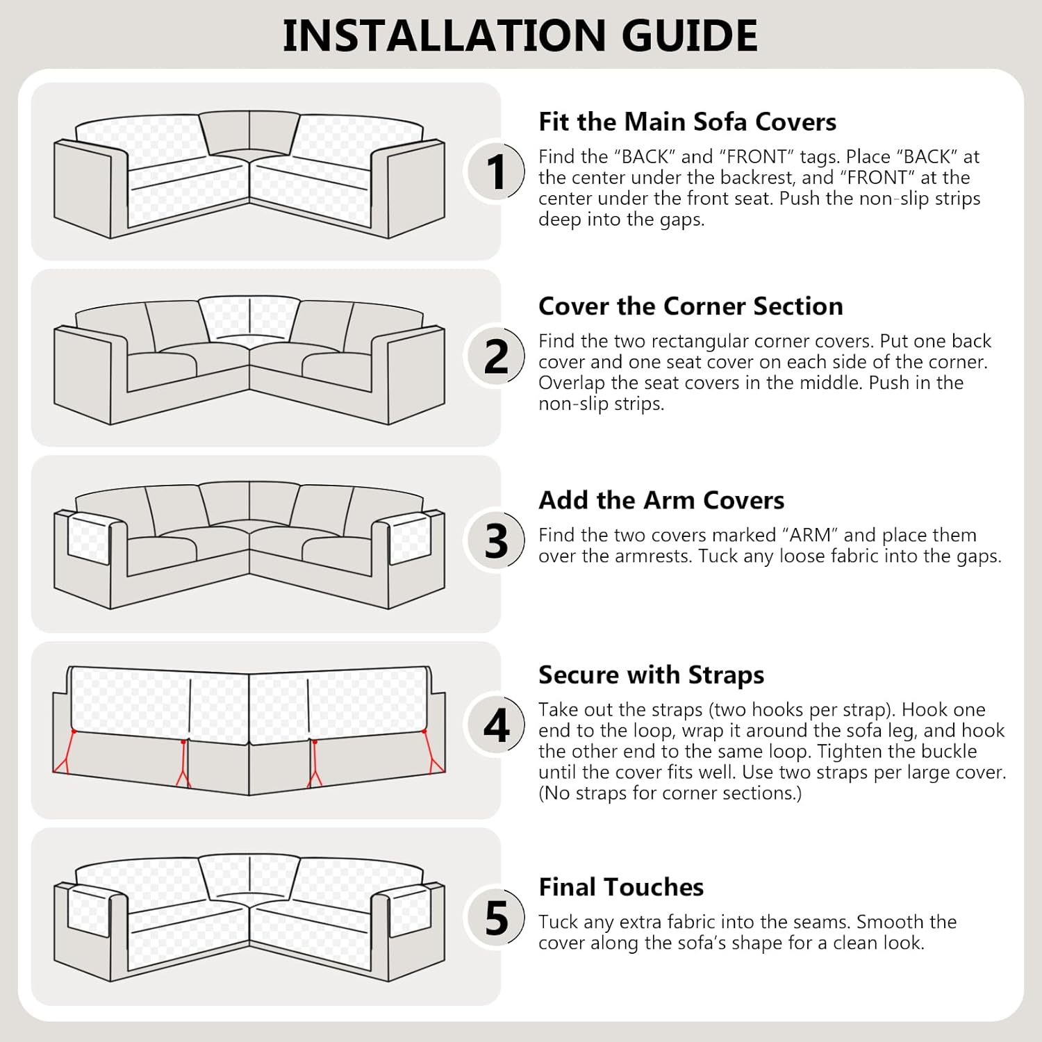• Easy Care, Long-Lasting Beauty: Quick to install and remove, this l shape sofa covers washable is machine washable in cold water, fade-resistant, and maintains its rich velvet texture. As a 6-piece sectional slipcovers set, each piece can be removed and washed separately. A versatile choice for busy families, our sofa protector keeps your living room looking luxurious with minimal effort